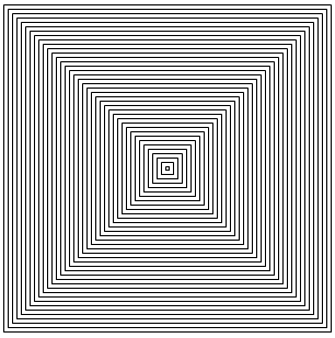 выводит ряд уменьшающихся квадратов с общим центром: